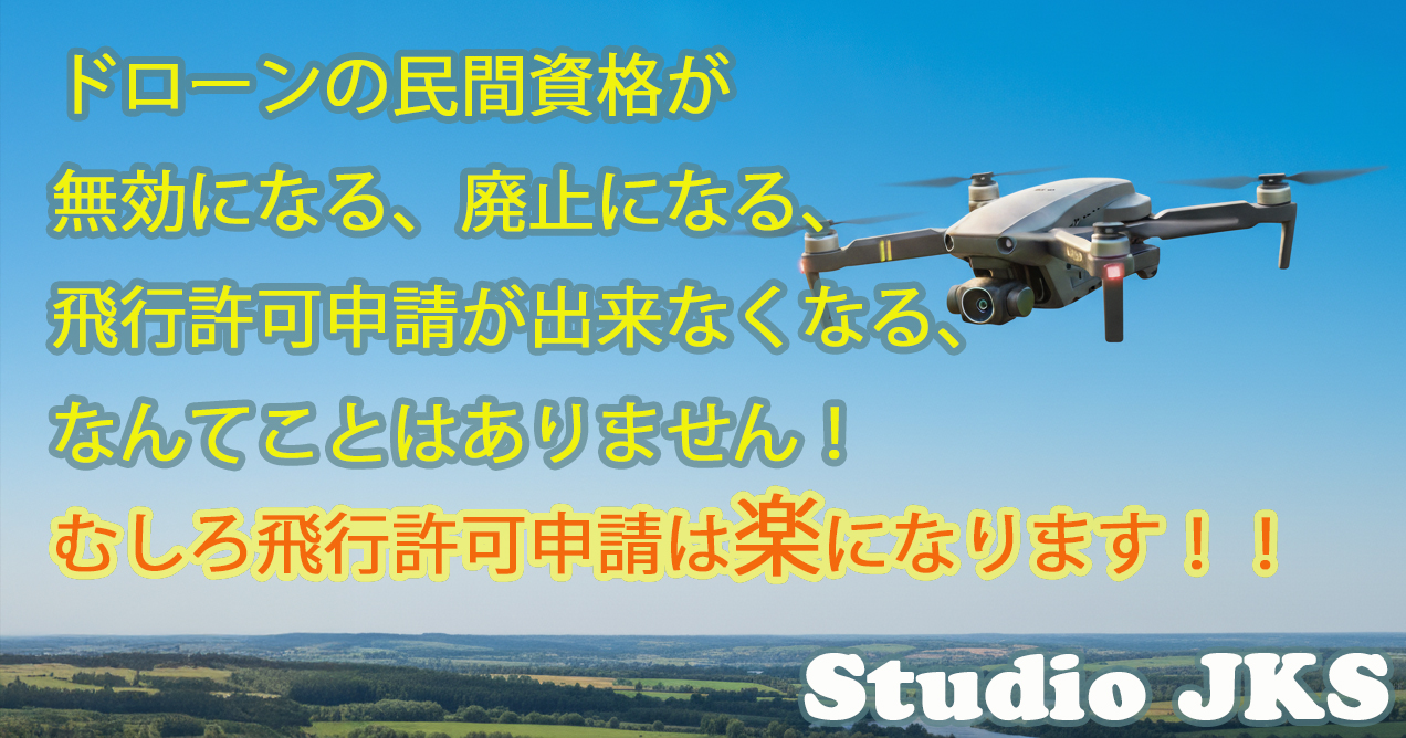 また、いい加減な情報が出回ったせいで、民間資格を持っている意味がなくなるとか、民間資格では飛行許可申請ができなくなるとか、惑わされていたであろう民間資格保持者にとって、この緩和措置は実に耳寄りで不安を打ち消してくれるありがたい情報のはずです。